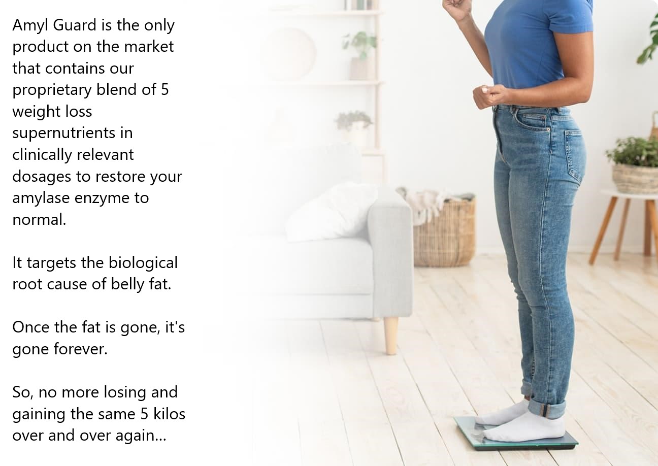 Amyl Guard is the world’s first and only weight loss solution that targets the real root cause of stubborn belly fat- your high amylase levels – and helps bring them back into balance.